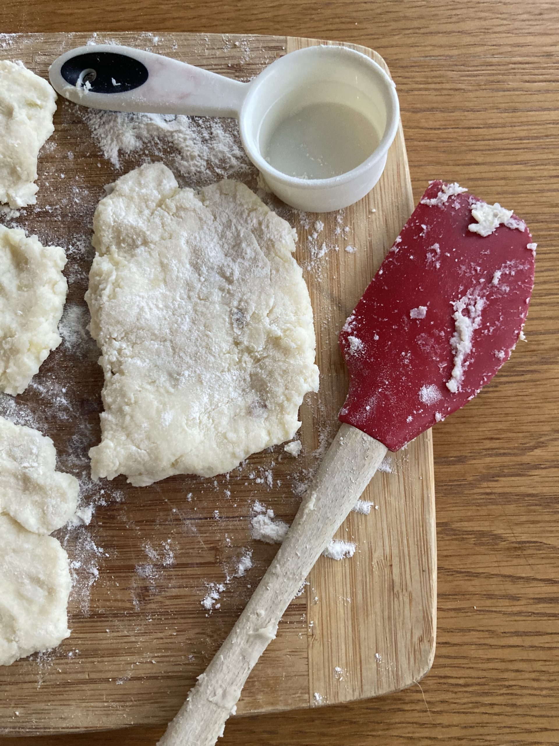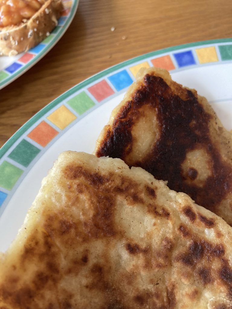 I am gradually un-learning this habit. Luckily alongside this I have learned an excellent way to use up surplus cooked potato: the delicacy that is potato bread. It’s delightfully simple – mashed potato, flour, butter and a pan + heat source is all you need. It’s also delicious.