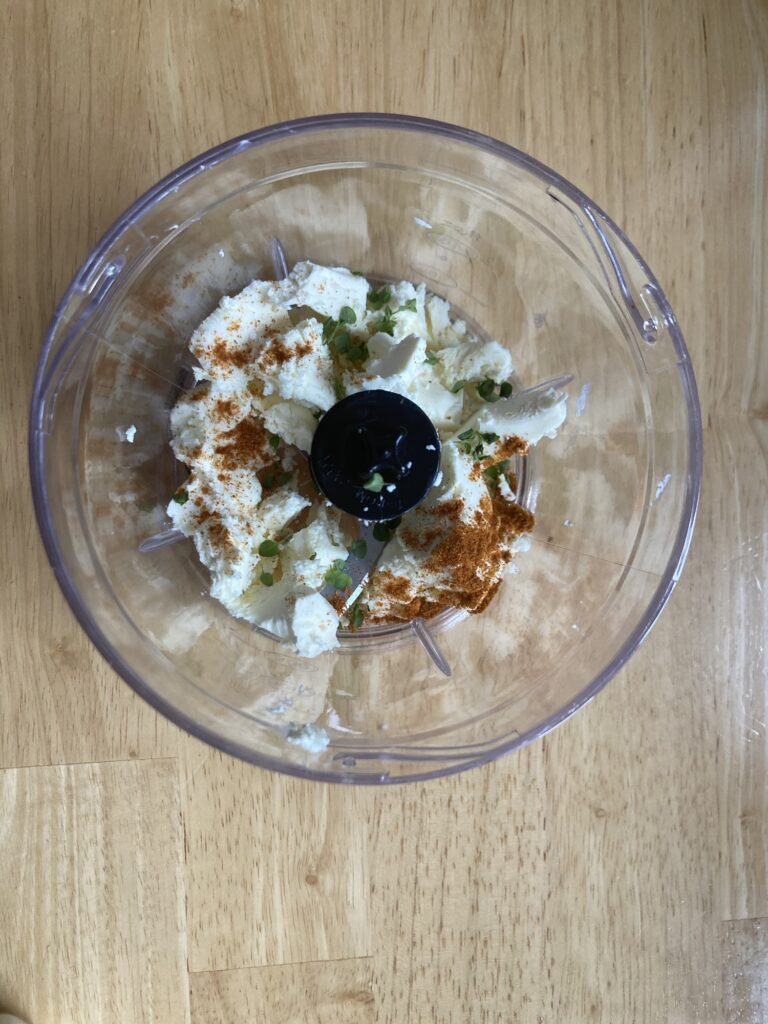 - Whisk or blend until the mixture is creamy and a consistency that drops off a spoon. You may need to add more milk if your feta is on the drier side.