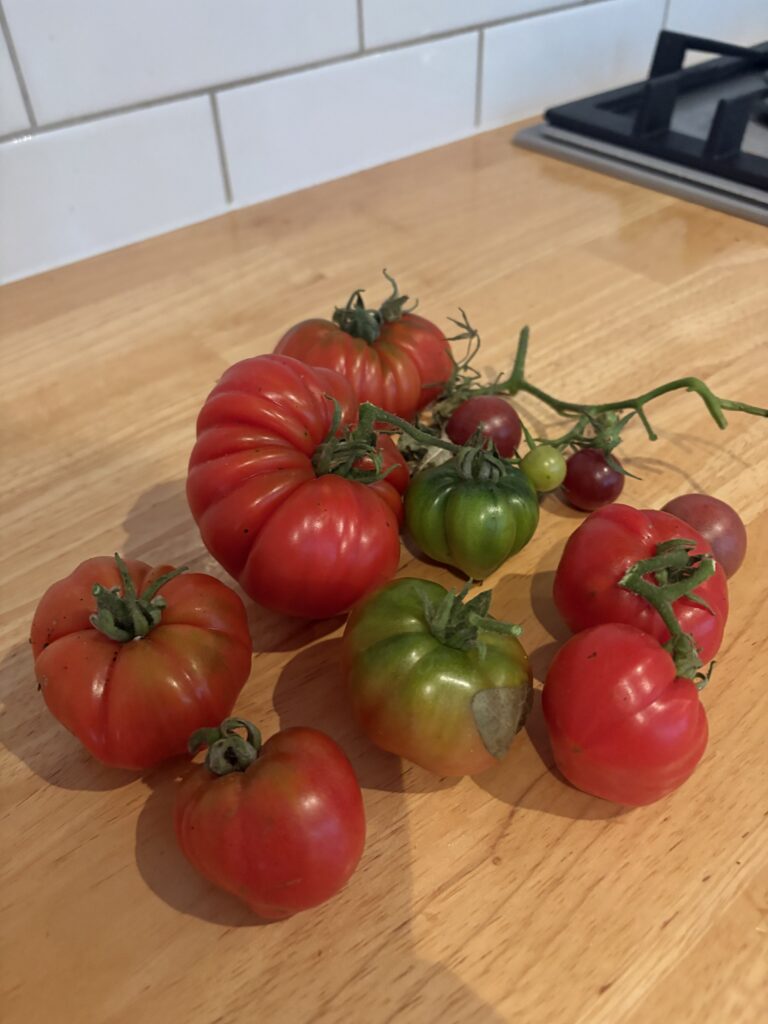 Much of my eating lately has been adorned with home grown tomatoes, which feels nothing short of miraculous seeing as my tomato plants looked like they weren’t inclined to produce anything for most of summer. No complaints from me though, harvesting my own tomatoes right now feels very autumnal and quite delicious.