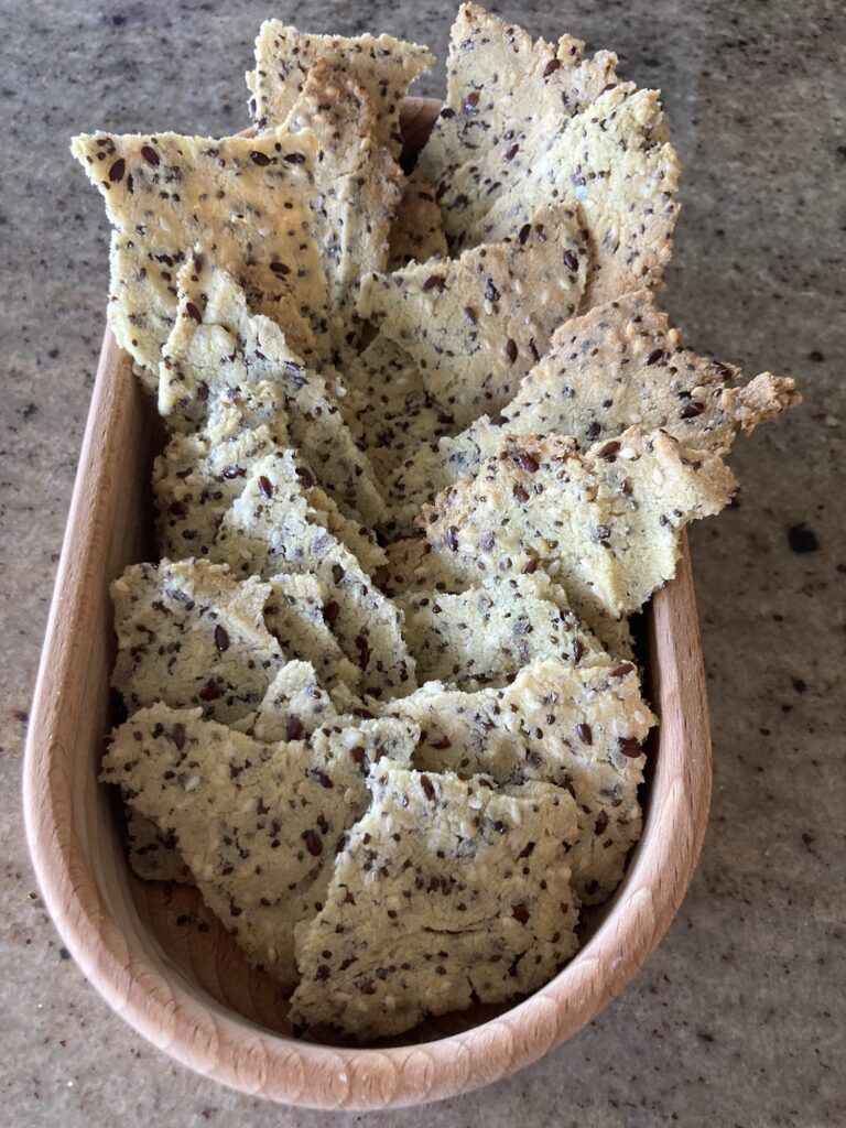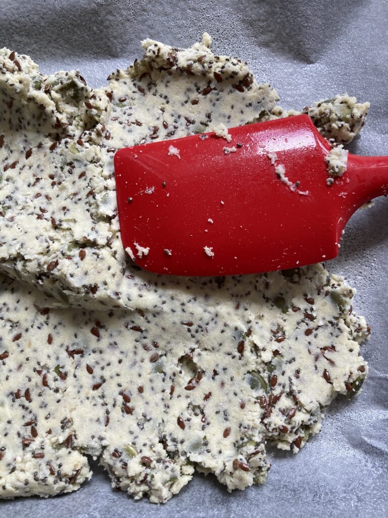Bake in the oven for 35 minutes or until golden brown around the corners. Remove and allow to cool, then break into cracker-sized pieces. Store in an air tight container if not using straight away.